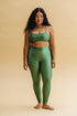 Legging com modelagem mais estreita, sem elástico, apenas o elastano do tecido. É uma legging mais justa na primeira prova, mas depois abraça seu corpo de uma forma muito confortável. Ela é mais alta e mais comprida que os outros modelos.