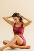 Top feminino decote redondo na frente e Y nas costas com comprimento médio.