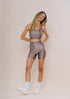 Calções com cintura larga e alta, corte amplo com elástico na cintura, em tecido macio com brilho e padrões exclusivos.